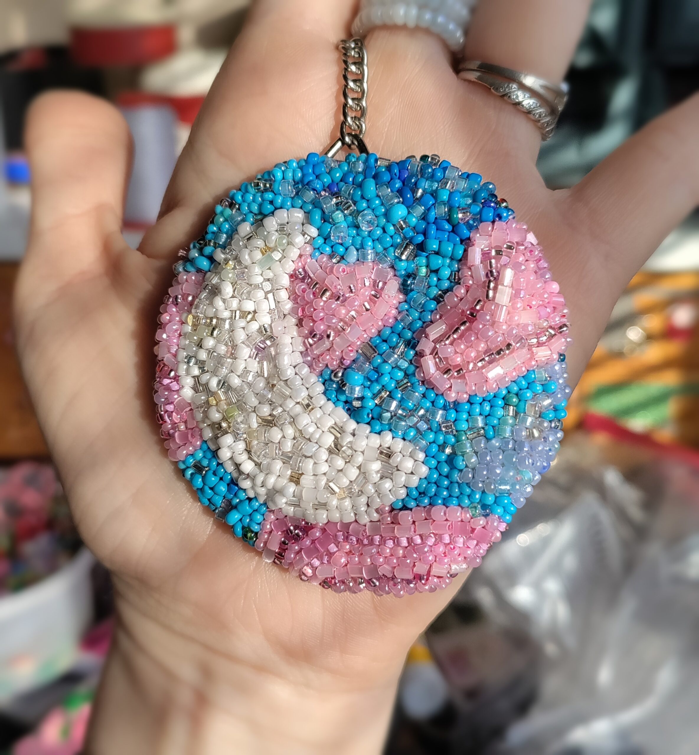 Käsitööna valminud rõõmsavärviline aksesuaar/kulin, mis särab ja sätendab. Valminud ainuekseplarina, kasutades pärlisuppi, uutest ja uuskasutatud materjalidest. Iga pärl eraldi kinnitatud.