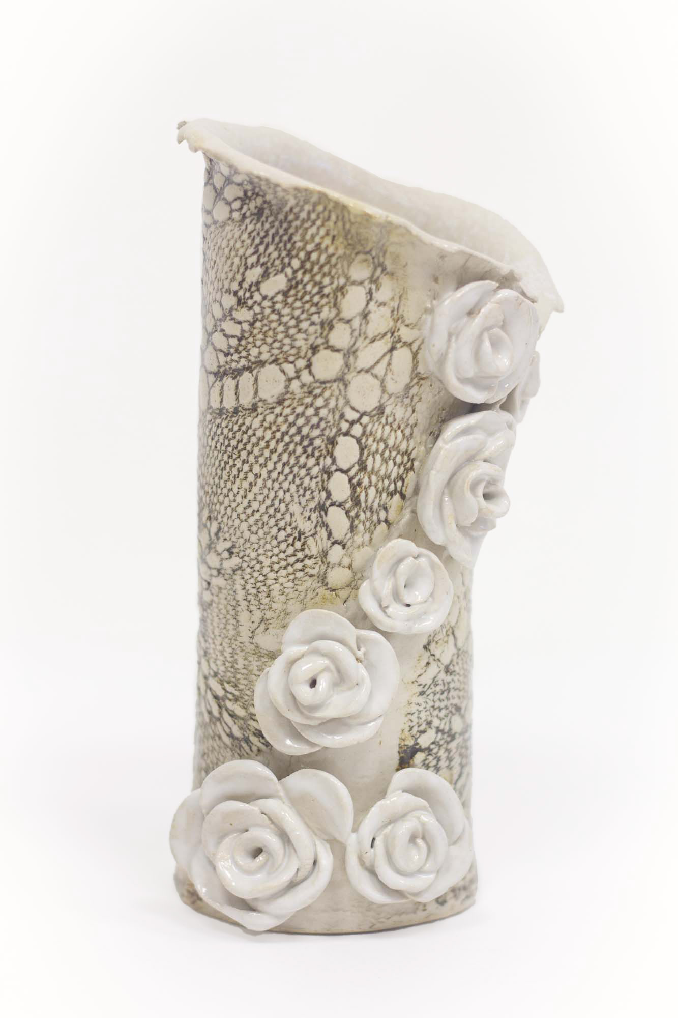 Vaas on valmistatud käsitööna. Värvus on naturaalne, roosid on valget värvi.