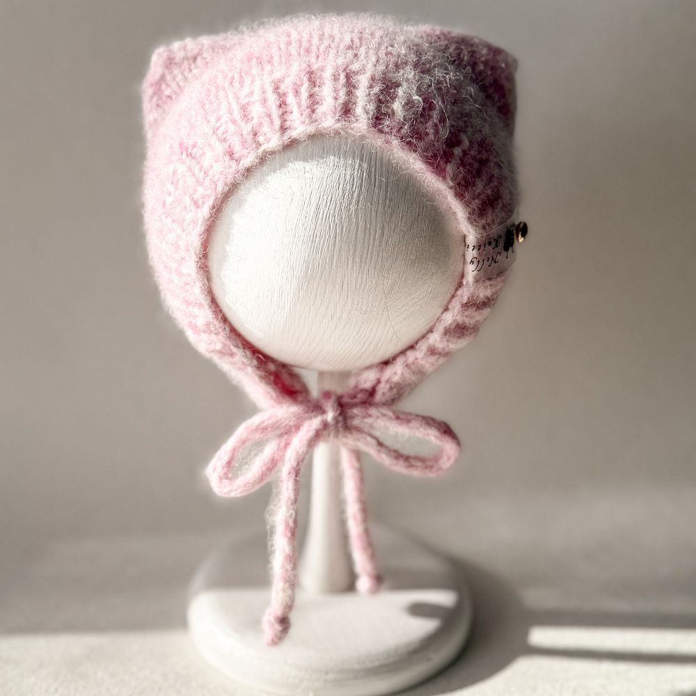 Armas käsitsi kootud kassikõrvadega müts beebile. Pehme ja soe alpaka lõngast, sobib ideaalselt igapäevaseks kandmiseks