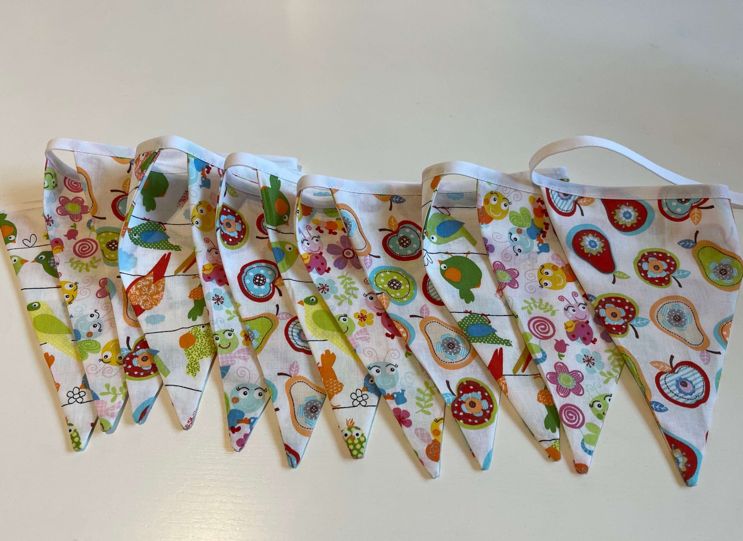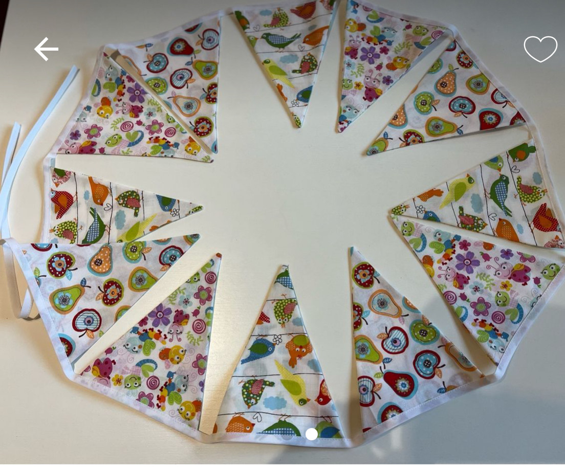 Puuvillasest kangast käsitööna valminud lõbus lipukett lastele. Lipuketis on kokku 12 lippu, suuruses 18 x 13 cm. Lipuketi kogupikkus on 2,5 m. Mõlemas otsas on 30 cm pael sidumiseks.