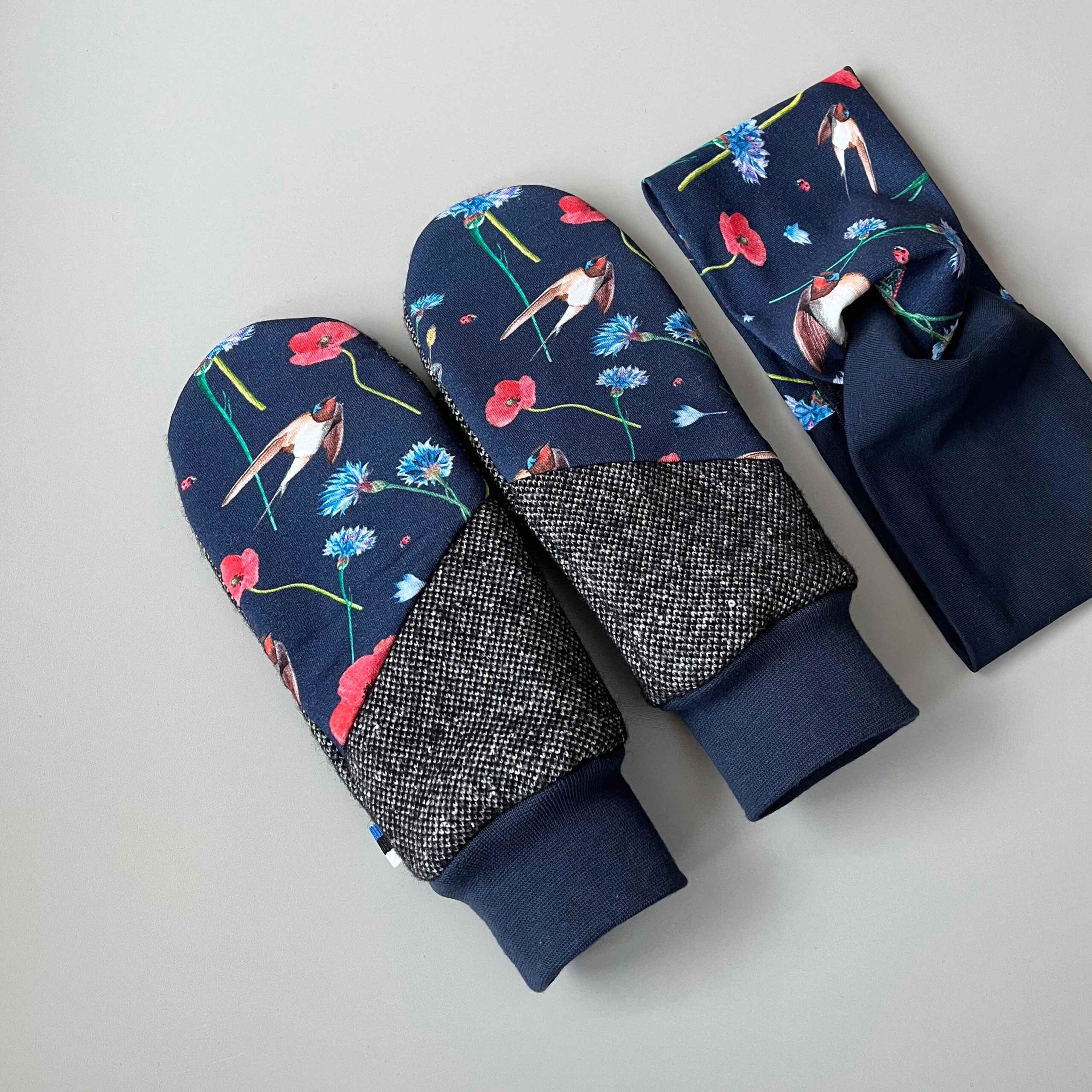 Soovi korral saad käpikutele juurde tellida samasuguse kirju kangaga meriinovillase voodriga peapaela.