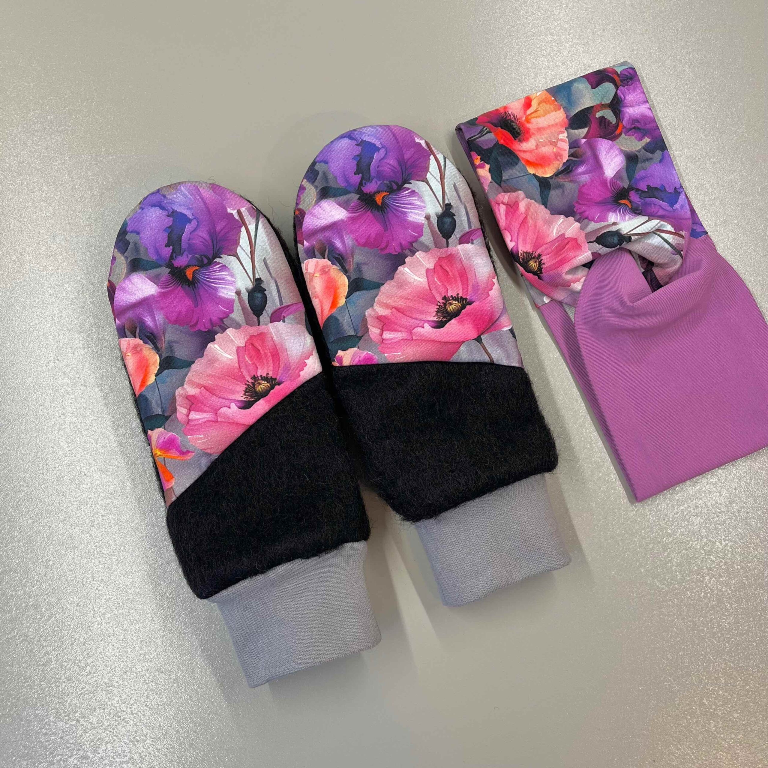 Soovi korral saad käpikutele juurde tellida samasuguse kirju kangaga meriinovillase voodriga peapaela.
