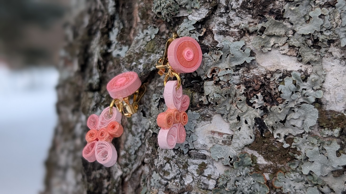Unikaalsed ja erilised paberist kõrvarõngad! Quilling tehnikas valmistatud! St et pabeririba on kokku rullitud, sellele on kuju antud ja siis kokku liimitud. Nad on imeliselt kerged! Kaaluvad kõigest mõni gramm ja katsudes on nad tugevad.