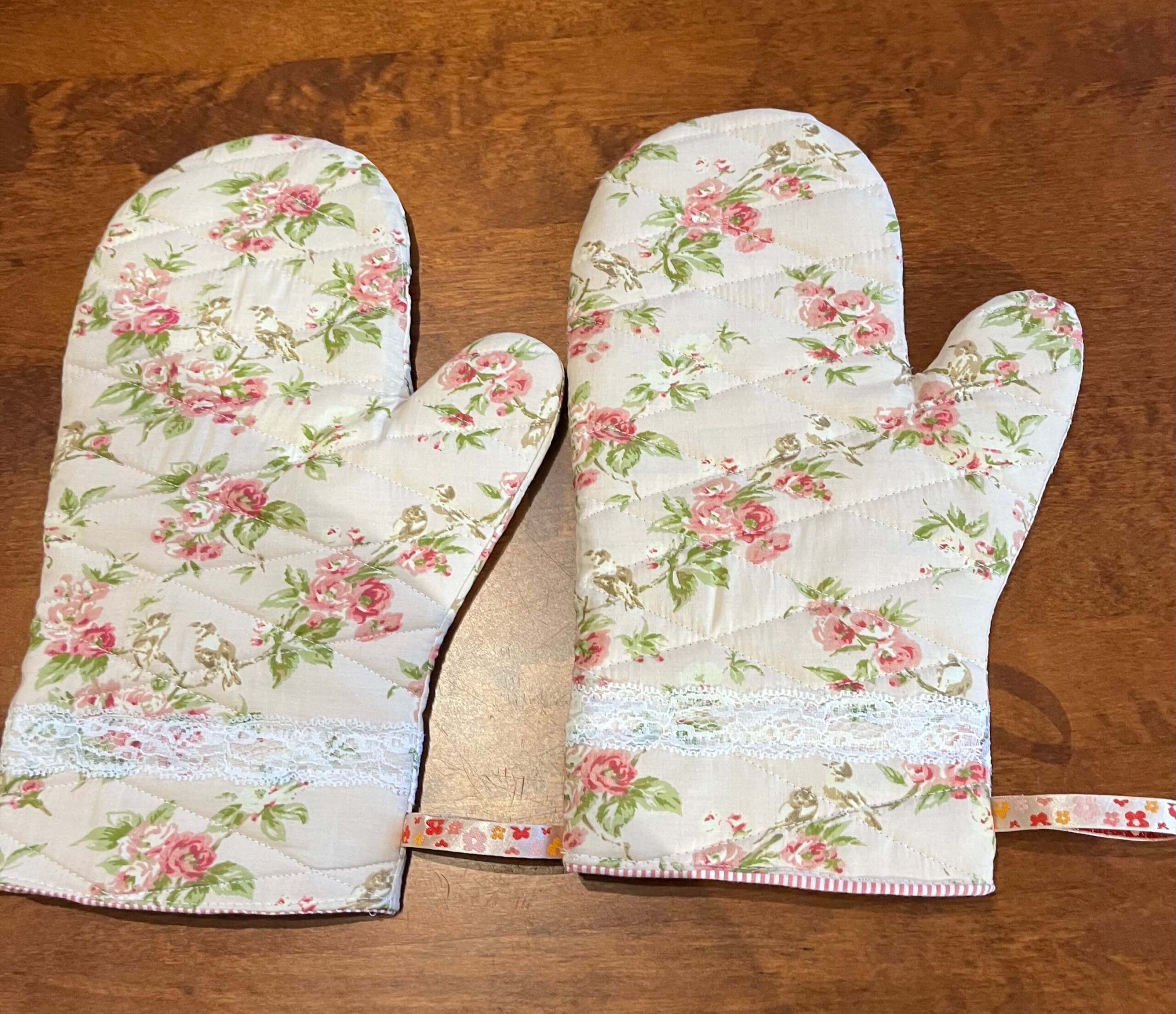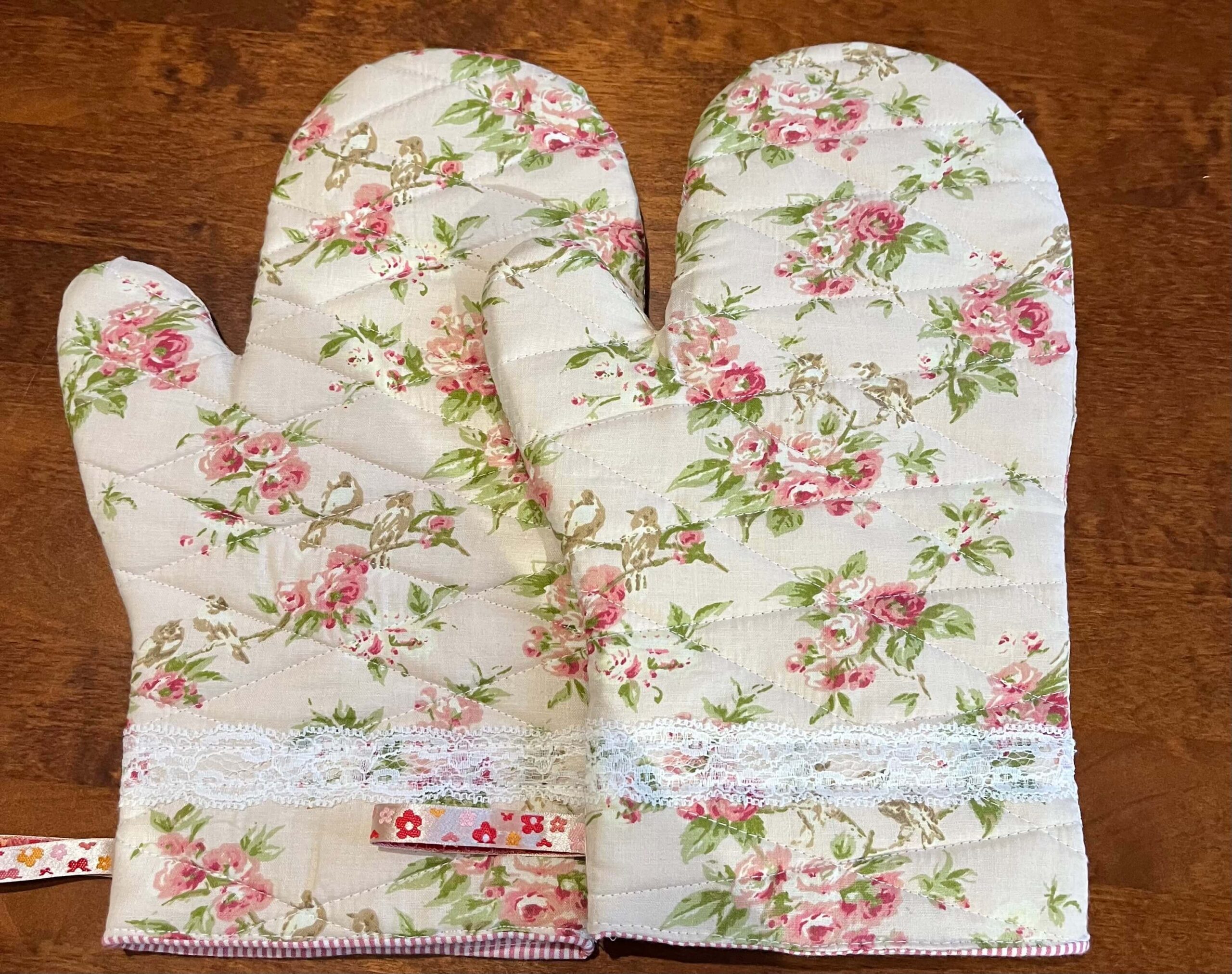Puuvillasest kangast käsitööna valminud pajakindad. Sees on kahekordne vatiin. Kindaid saab pesta 40 c juures.
