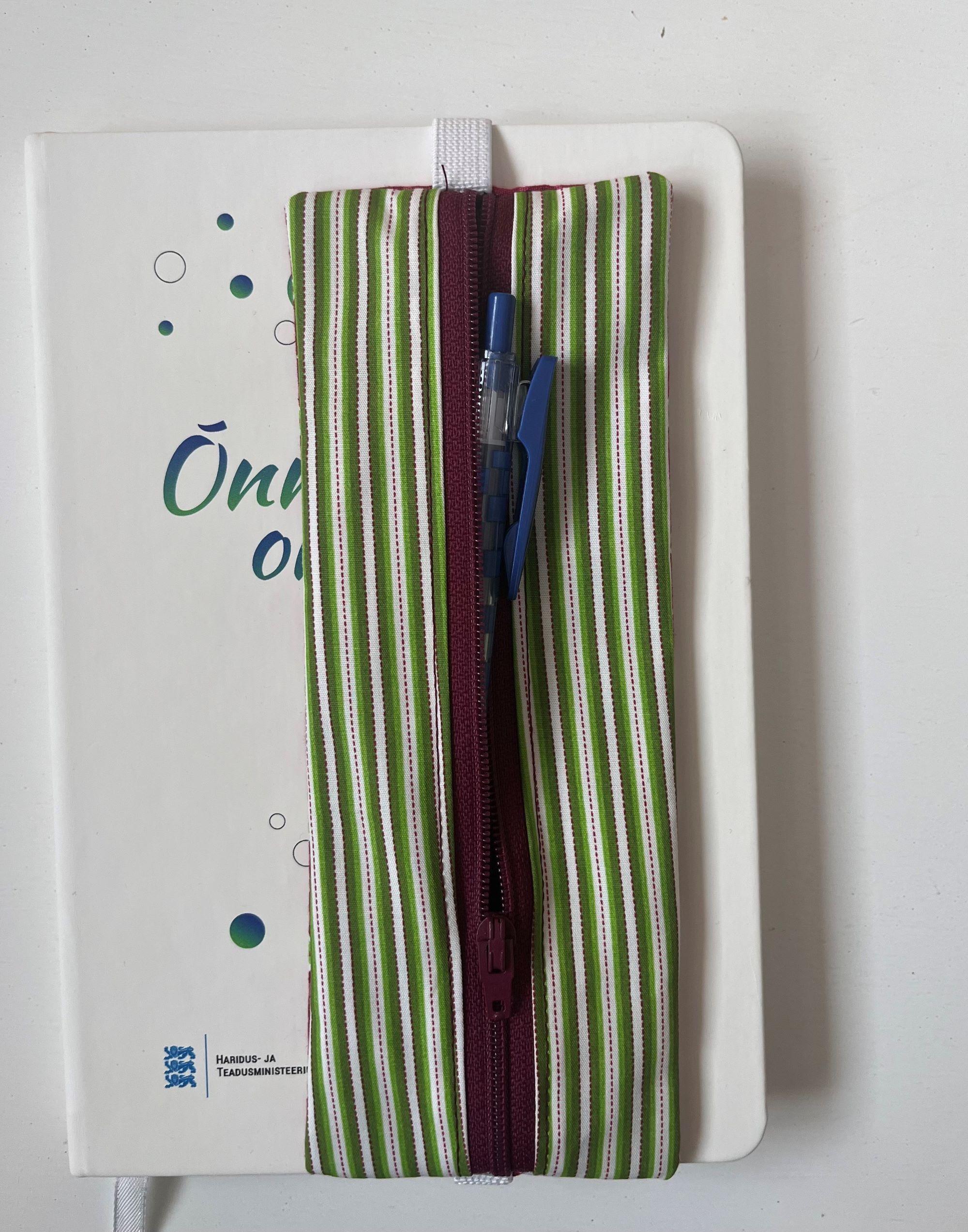 Kummiga pliiatsite tasku märkmiku jaoks. Sobib hästi DIN A5 märkmiku, raamatu jaoks.