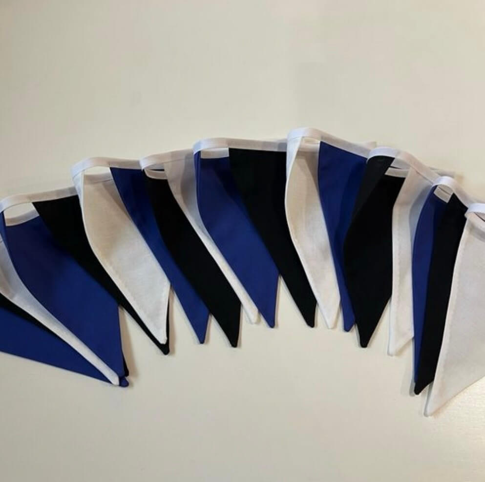 Puuvillasest kangast õmmeldud sini-must-valge lipukett. Lipuketis on 18 lippu, suurusega 15 x 20 cm. Lipuketi pikkus on 3,50 m. Mõlemas otsas on 30 cm pael sidumiseks.