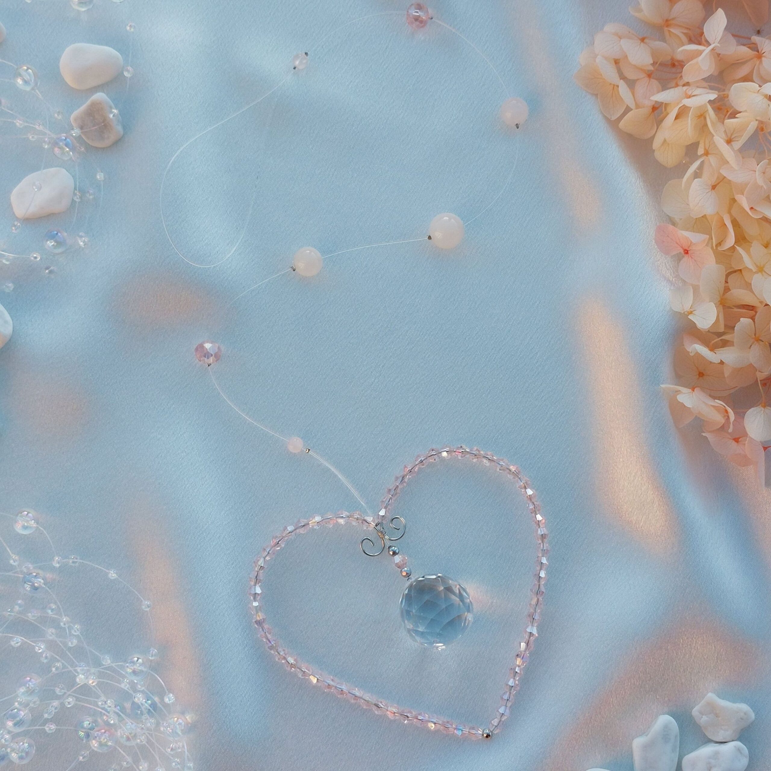 Päikesepüüdjale on lisatud roosast kvartsist pärleid.